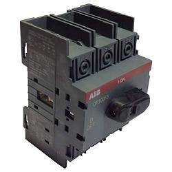 3 poles 100 amperes rated at 600 VAC front operated based mounted, DIN-rail mountable switch disconnector / open non-fusible disconnect switch with protected clamp terminals. Handle and shaft are not included.