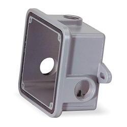 Back Box Gray - Accessory for model 350 horns. Cast aluminum neoprene-gasketed weatherproof housing for outside use, complete with mounting lugs. Tapped for 1/2"" and 3/4"" conduit. 4-3/8"" square box. 2"" deep mounting lugs on 4-1/2"" centers.